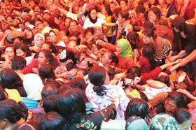 “Semua pihak harus mengambil pelajaran kejadian masa lalu di Pasuruan dan di Jakarta selatan. Beberapa orang meninggal dunia karena terinjak dan berdesakan waktu berebut uang yang jumlahnya tidak seberapa,” katanya, Minggu (27/7/2014).