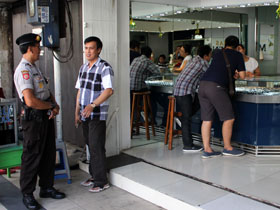 Pantauan suarasurabaya.net, patroli pengamanan dilakukan di beberapa titik seperti di pusat perbelanjaan Darmo Trade Centre (DTC) Wonokromo, pertokoan Blauran, dan Pasar Kembang, Surabaya. Patroli pengamanan di toko emas ini, akan terus ditingkatkan hingga H+7 lebaran.