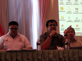 – Rahmad Shah Ketua PKBSI (tengah) saat konferensi pers menjelaskaan kronologis pemindahan satwa KBS.