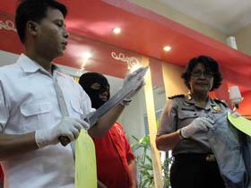 – AKBP Sumaryono Kasat Reskrim Polrestabes Surabaya (Kiri), didampingi Kompol Suparti Kasubbag Humas menunjukkan.