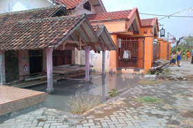 Teks Foto : Rumah warga di Desa Kedung Bendo, Tanggulangin yang terkan dampak akibat dari jebolnya tanggul titik 73.