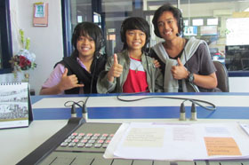 Three Song saat diwawancarai Radio Suara Surabaya.
