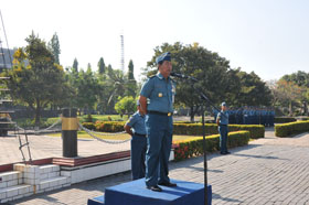– Kolonel Laut (S) Nanang Permadi Asisten Perencanaan (Asrena) Danlantamal V saat menjadi Irup upacara bendera yang digelar di lapangan apel Yos Sudarso, Mako Lantamal V, Senin (31/8/2015).