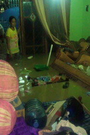 Subandi, warga Menganti RT 26 melaporkan air bahkan sudah masuk ke dalam rumah warga yang diperkirakan berjumlah 50 KK.