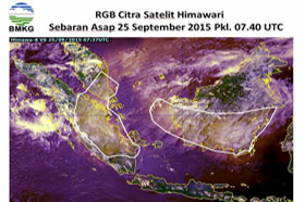 Rilis BMKG menunjukkan pada Jumat, kabut asap dari wilayah Kalimantan dan Sumatera mengarah ke Singapura.(edy/iss/ipg)