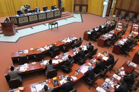 – Suasana rapat paripurna LKPJ AMJ Wali Kota surabaya 2010-2015 di DPRD Kota Surabaya, Selasa (5/5/2015).
