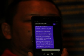 Dia menjelaskan, ancaman teror pembunuhan dengan bondet (bom ikan, red) itu melalui pesan singkat yang diterimanya lewat SMS terkait kasus peliputan tambang pasir ilegal.