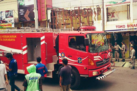 – Pertokoan cat di jalan Baliwerti yang terbakar