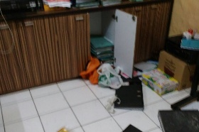 – Kondisi lemari file di ruangan Direktur Keuangan KBS yang dibobol orang.