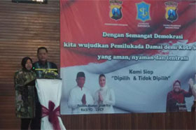 Deklarasi Pilkada Damai yang digelar Polrestabes Surabaya dan Polres Tanjung Perak diakhiri dengan penandatanganan kesepakatan damai dan siap dipilih dan tidak dipilih.
