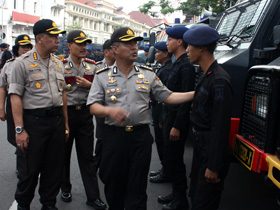 “Apel pasukan dipusatkan di sini (Polrestabes Surabaya-red) karena pelaksana di lapangan adalah Polrestabes Surabaya,” kata Kombes Pol Jamaludin kepada wartawan, Kamis (30/4/2015) usai melakukan pemeriksaan pasukan.