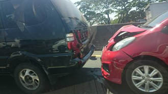 Kronologi kejadiannya, saat melaju di tol Waru-Perak, mobil Kijang tiba-tiba dipotong kendaraan lain. Karena kaget, mobil Kijang melakukan pengereman secara mendadak hingga akhirnya ditabrak mobil Yaris yang melaju tepat di belakangnya. Saat ini semua kendaraan sudah dipinggirkan.