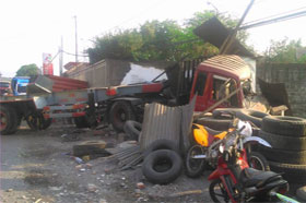 – Truk trailer yang menabrak mobil, pick up dan sepeda motor.