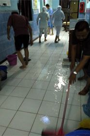 2. Genangan air hujan masuk ke ruang rawat inap RSUD dr. Soetomo Surabaya.