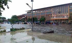 Sementara itu, di daerah pergudangan jalan Kalianak, menurut Eni salah seorang netter E100 genangan air mencapai ketinggian 20 cm. Genangan yang tinggi juga terjadi di Jalan Kertajaya arah Klampis yang mencapai sekitar 15 cm.