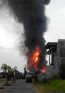 Kepulan asap dan api di Pasar Baru Porong, Sidoarjo, Selasa (8/11/2016). Foto: Habibur Rochman via e100