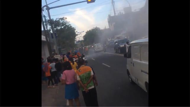 Suasana warga sekitar dan pengguna jalan saat asap tebal muncul dari Toko Remaja, Jalan Kutai, Senin (24/4/2017). Foto: Deddy Hamzah