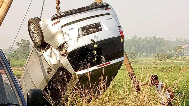 Ertiga Terbalik Masuk Sungai di Randegansari