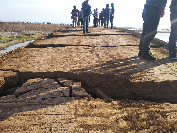 Retakan di tanggul penahan lumpur di Dusun Pologunting Desa Gempolsari, Kecamatan Tanggulangin, Sidoarjo. Foto: Istimewa