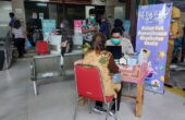 Salah seorang penyanyi membawakan lagu “Luluh” yang dipopulerkan Grup Band Samson setelah sesi foto selesai.