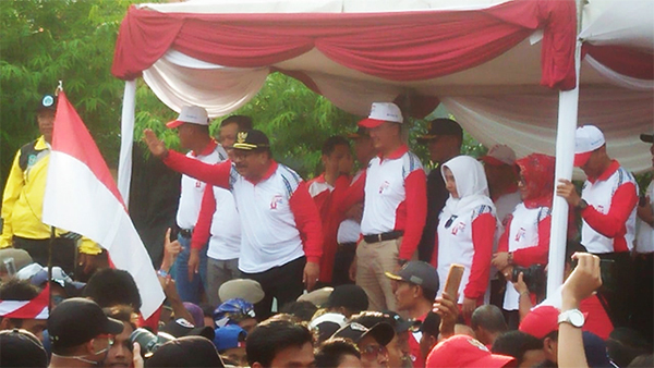 Soekarwo, Gubernur Jawa Timur saat melepas keberangkatan peserta Gerak Jalan Perjuangan Mojokerto-Surabaya. Foto: Wahyudi via WA SS