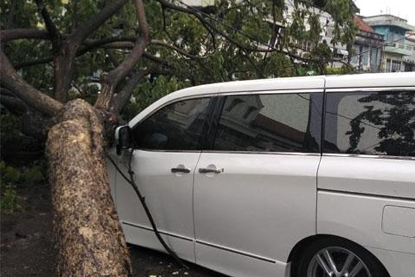 20. Sebelum pintu masuk Pasar Atom Lama, pohon menimpa mobil Innova yang sedang parkir.