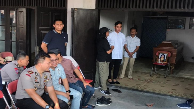 Gibran Raka Bumingraka, Putra Sulung Joko Widodo, mengenakan baju warga putih saat melayat di rumah duka, Kampung Tirtoyoso RT 04/RW 13, Kelurahan Manahan, Kecamatan Banjarsari, Solo, Senin (1/7/2019). Foto: Antara