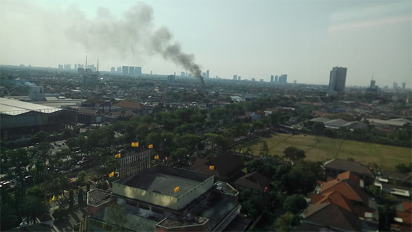 Berdasarkan foto yang dikirimkan Ari Budi, pendengar Radio Suara Surabaya, terlihat asap hitam membubung tinggi dari lokasi kebakaran.(iss/ipg)