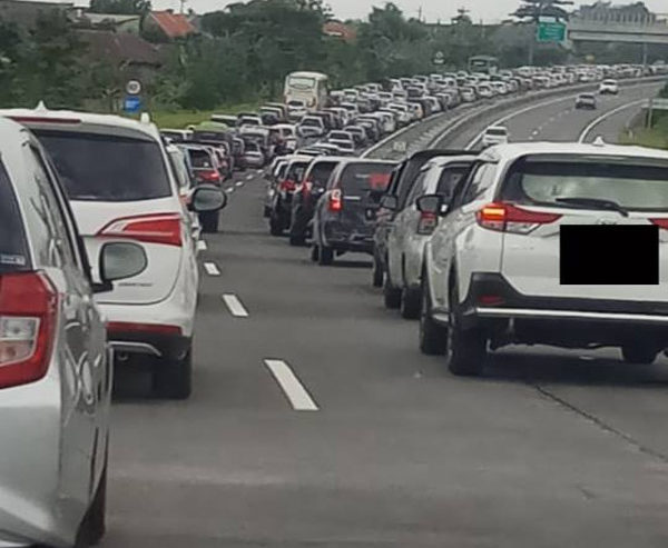 Antrean hingga 3 Kilometer menjelang exit Tol Pandaan, Selasa (1/1/2019) siang. Foto: Purwanto via WA SS