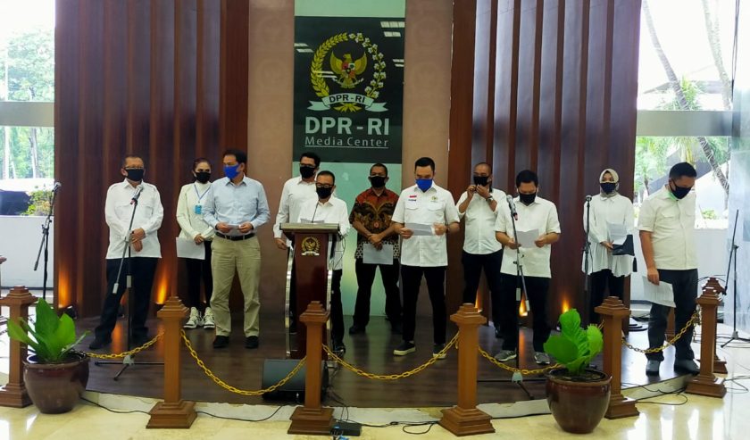 Konferensi pers Launching Satgas Lawan Covid-19 di Lobby gedung nusantara III, Kompleks Parlemen, Senayan, Jakarta, Kamis (9/4/2020). Foto: Istimewa