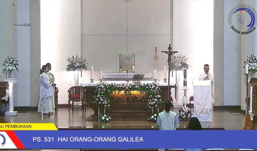 Pelaksanaan Ibadah Misa Kenaikan Isa Almasih bagi umat Kristiani di sejumlah Gereja di Surabaya digelar secara daring pada Kamis (21/5/2020).
