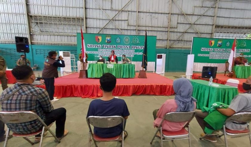 Sebanyak 1.056 warga Sidoarjo menjalani sidang tindak pidana ringan (tipiring) di tennis indoor kompleks GOR Sidoarjo, Kamis (5/11/2020). Mereka terjaring razia yustisi prokes yang digelar tim gabungan di seluruh kecamatan di Sidoarjo.