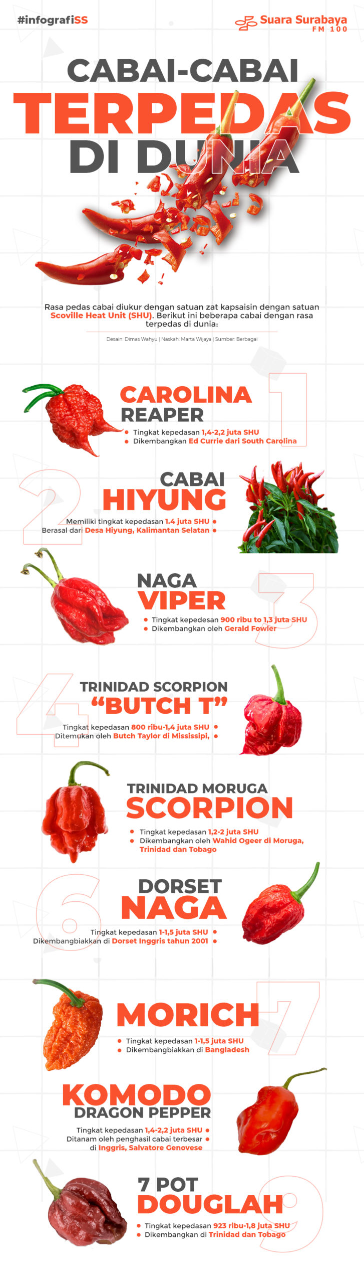 Jangan cuma tahu memakannya saja, ketahui jenis-jenis cabai terpedas di dunia. Salah satunya adalah cabai Indonesia lho!