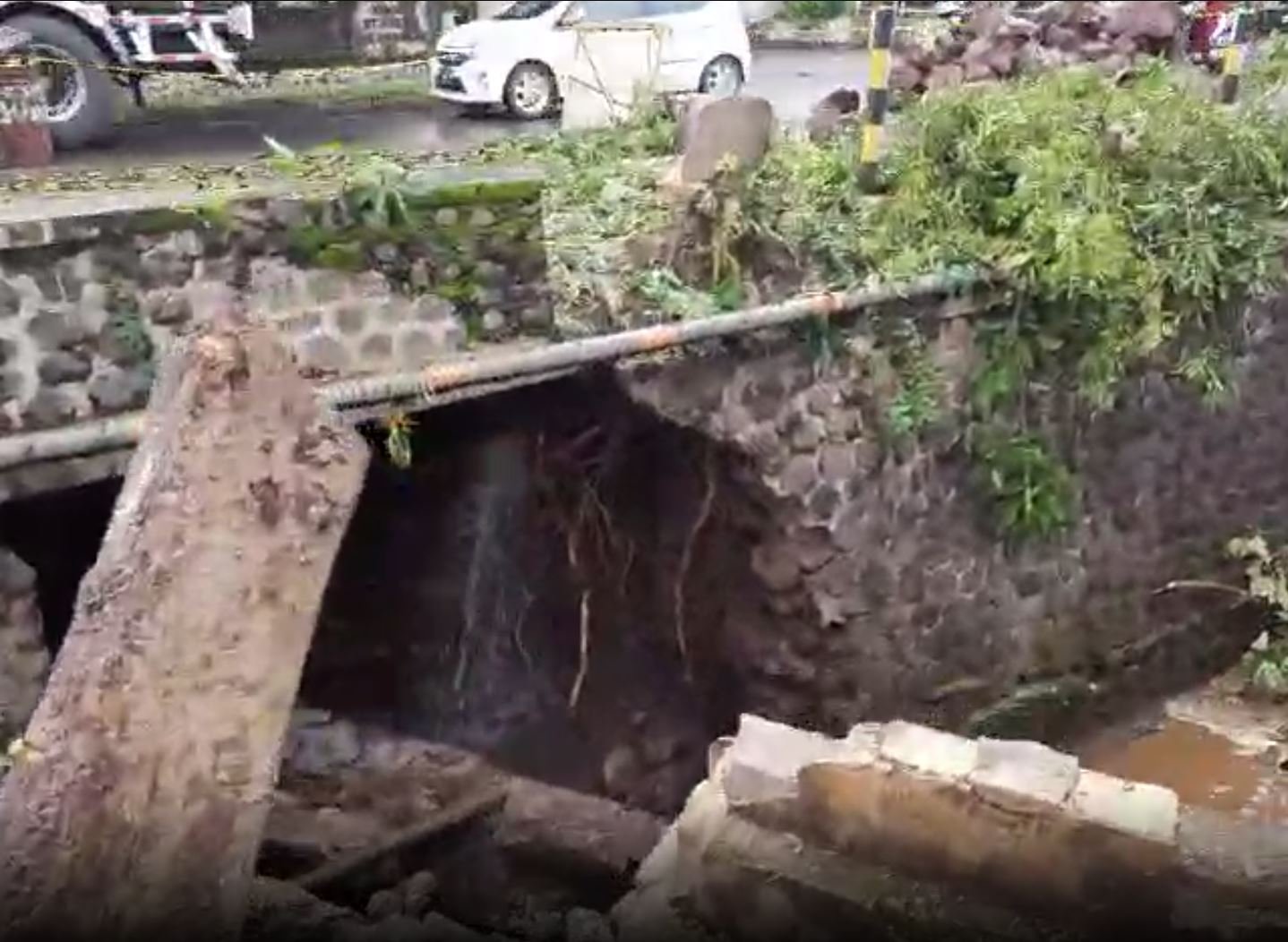 Gorong-gorong di Desa Alasbuluh, Kecamatan Wongsorejo, Kabupaten Banyuwangi, yang ambrol pada Kamis (11/3/2021). Foto : Teguh Santoso via WA SS