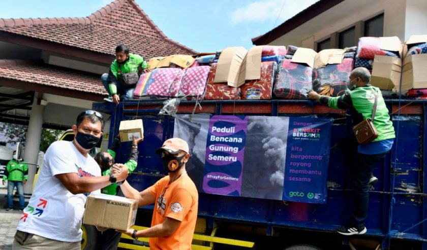 Perusahaan teknologi yang menaungi Gojek, Tokopedia dan GoTo Financial (GoTo) bersama Yayasan Anak Bangsa Bisa (YABB) menyalurkan bantuan tanggap darurat bagi masyarakat yang terdampak awan panas guguran Gunung Semeru, Sabtu (11/12/2021).