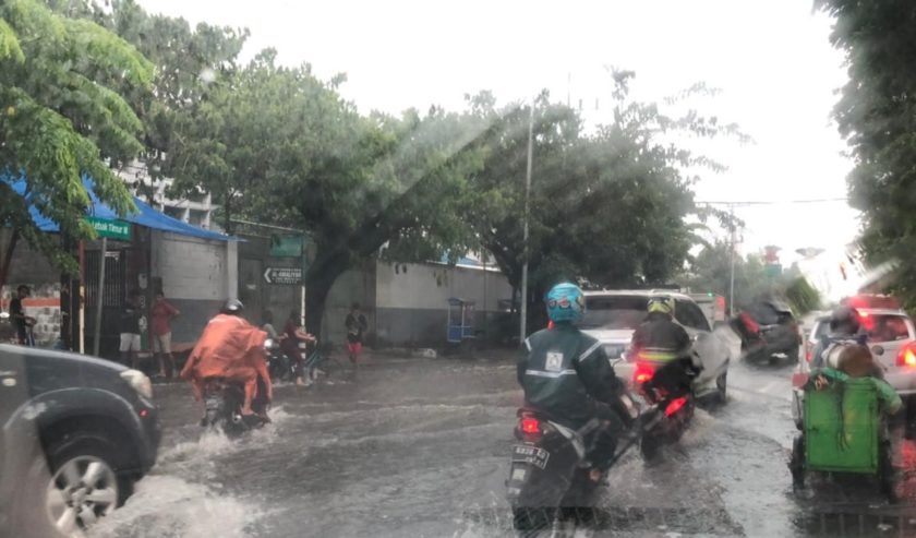 “Banjir di Manukan Tama ke arah Jelindro, cukup dalam setengah ban Innova, mobil antre juga melambat di belokan,” tulis Christian Stepanus Yulianto.