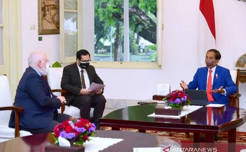 Pernyataan tersebut disampaikan Jokowi saat menerima Frans Timmermans, Presiden Eksekutif Komisi Eropa untuk Kebijakan Hijau Eropa dan Iklim di Istana Merdeka pada Senin kemarin (18/10/2021).