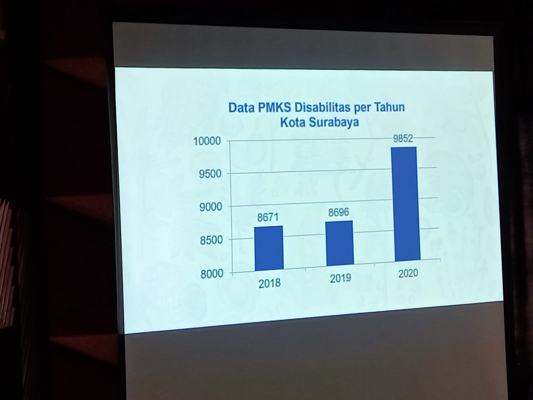 Dinas Sosial Kota Surabaya mengungkapkan data terbaru jika jumlah penyandang disabilitas di Kota Surabaya selama tiga tahun terakhir mengalami kenaikan. Di tahun 2020 jumlah penyandang disabilitas mencapai 9.852 orang.