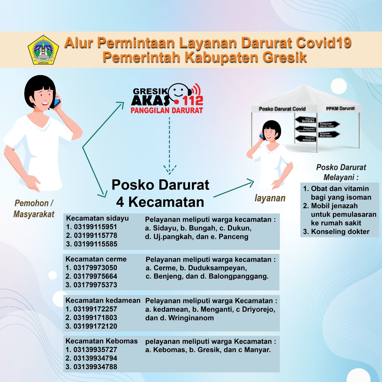 Budi Raharjo Kepala Dinas Komunikasi dan Informasi Pemkab Gresik mengatakan, Layanan Darurat Covid-19 dapat dimanfaatkan masyarakat yang membutuhkan di tengah tingginya kasus Covid-19 dan pasien meninggal saat rumah sakit kekurangan tenaga petugas pemulasaraan.