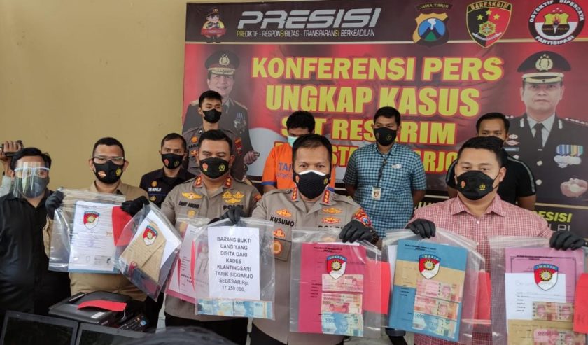Tim Saber Pungli Unit Tindak Pidana Korupsi Satuan Reserse Kriminal Polresta Sidoarjo mengamankan WS (45 tahun) Kepala Desa Klantingsari, Tarik, Sidoarjo, dalam Operasi Tangkap Tangan (OTT).