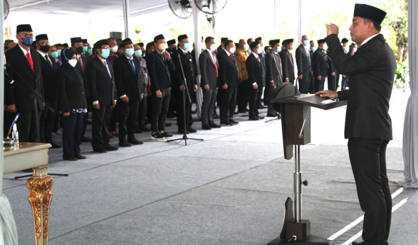 Eri Cahyadi Wali Kota Surabaya menggelar pelantikan massal pejabat di lingkungan Pemerintah Kota (Pemkot) Surabaya, di penghujung 2021.