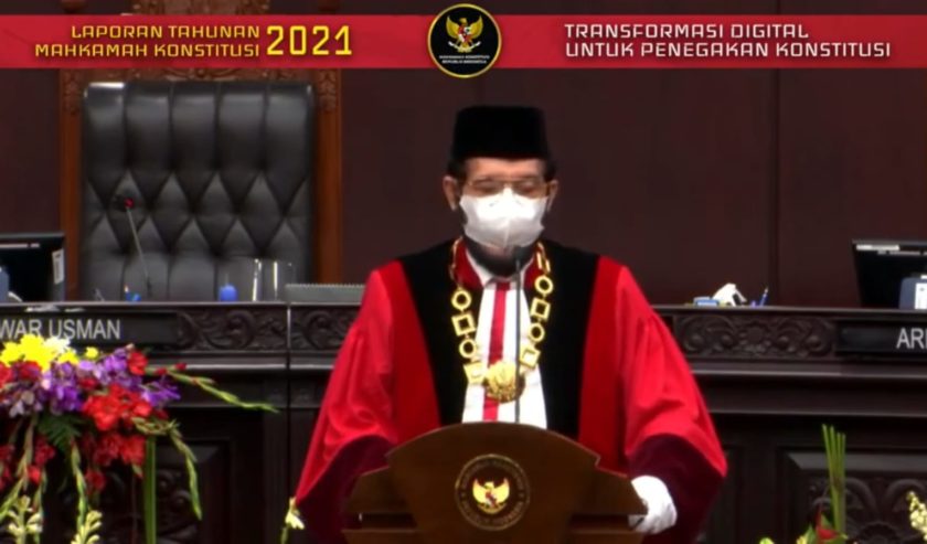 Mahkamah Konstitusi (MK) meluncurkan buku laporan tahunan 2021 yang berjudul “Tranformasi Digital Untuk Penegakan Konstitusi”. Acara ini dihadiri Joko Widodo (Jokowi) Presiden secara luring dan pimpinam lembaga negara lainnya.