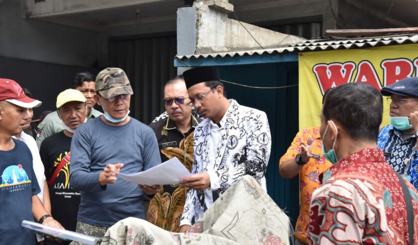Ahmad Muhdlor Ali Bupati Sidoarjo merespon keluhan pedagang Pasar Baru Wadungasri, Kecamatan Waru tentang banjir yang merendam pasar ini setiap musim hujan.