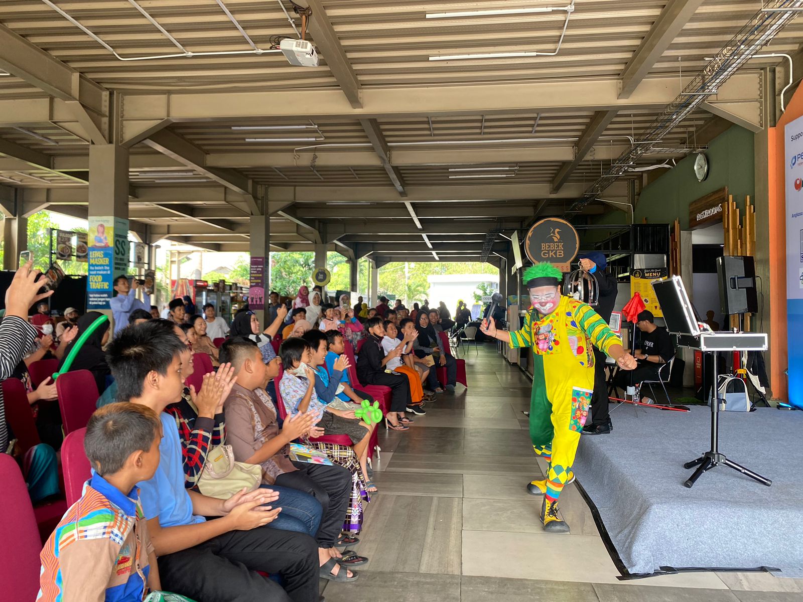 Kurang lebih 100 anak peserta khitan massal Suara Surabaya Healthy Festival menikmati pertunjukan sulap dan aksi badut pada Rabu (27/12/2023). Foto: Meilita suarasurabaya.net