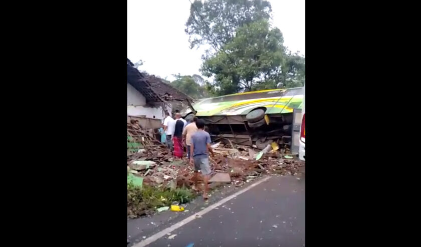 “Tadi ada dua bus yang mengalami kecelakaan. Yang satu bus di belakang mengalami rem blong terus menghantam depannya, yang bus depannya kemungkinan ngeblong kemudian menghantam rumah warga,” ujarnya.
