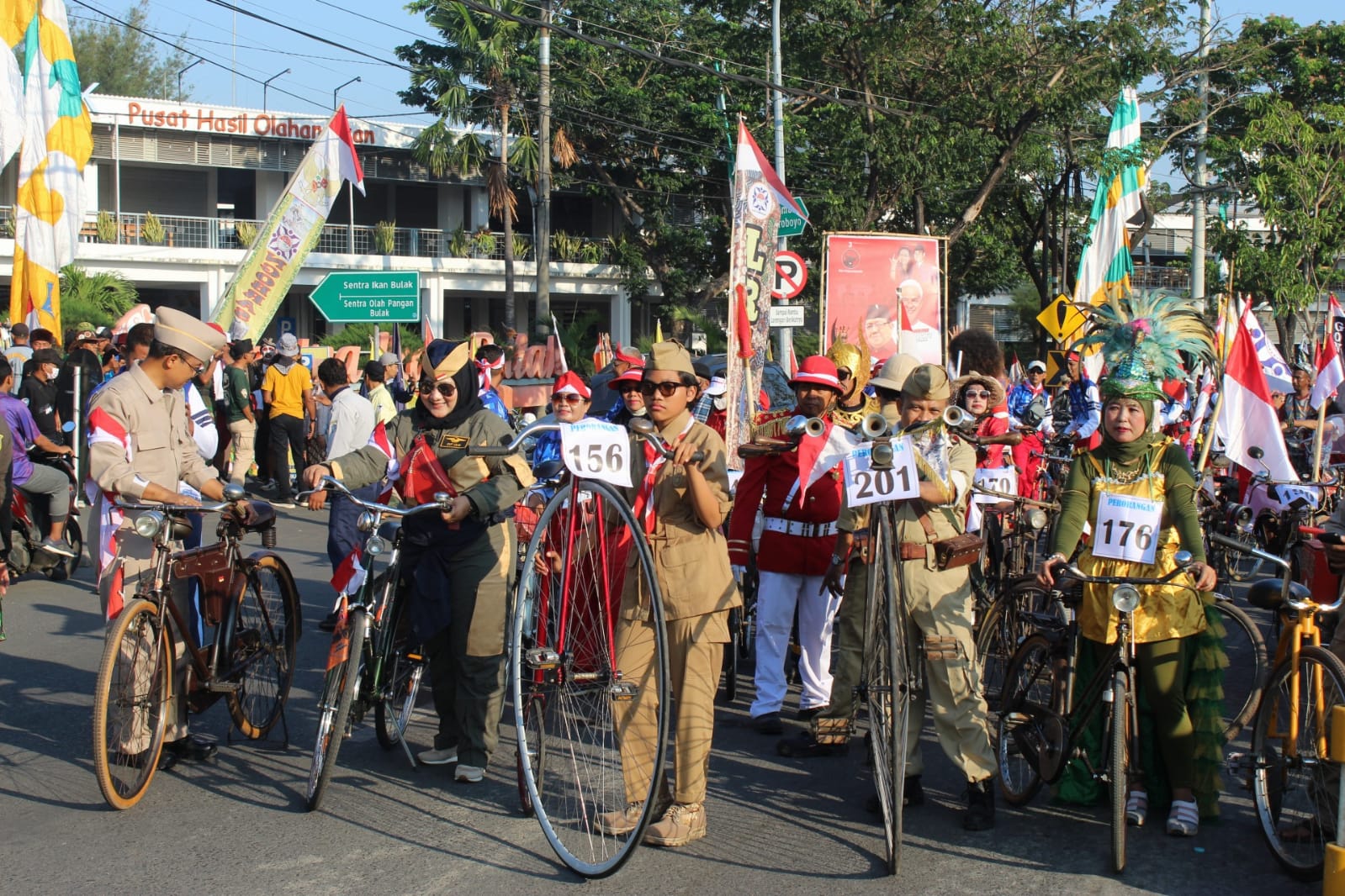 Ribuan peserta sepeda onthel dari seluruh Indonesia di bawah naungan Komunitas Sepeda Tua Indonesia (KOSTI) merayakan Hari Ulang Tahun (HUT) ke-78 Republik Indonesia (RI).