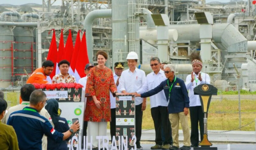“Puji syukur, Alhamdulillah, hari ini kita akan meresmikan Proyek Tangguh Train 3, penghasil gas bumi terbesar di Indonesia, dan juga kita akan groundbreaking proyek Ubadari CCUS, proyek hilirisasi blue ammonia, dan proyek lapangan migas Asap Kido Merah,” ujar Presiden Jokowi mengawali sambutannya saat peresmian seperti dilansir Antara.