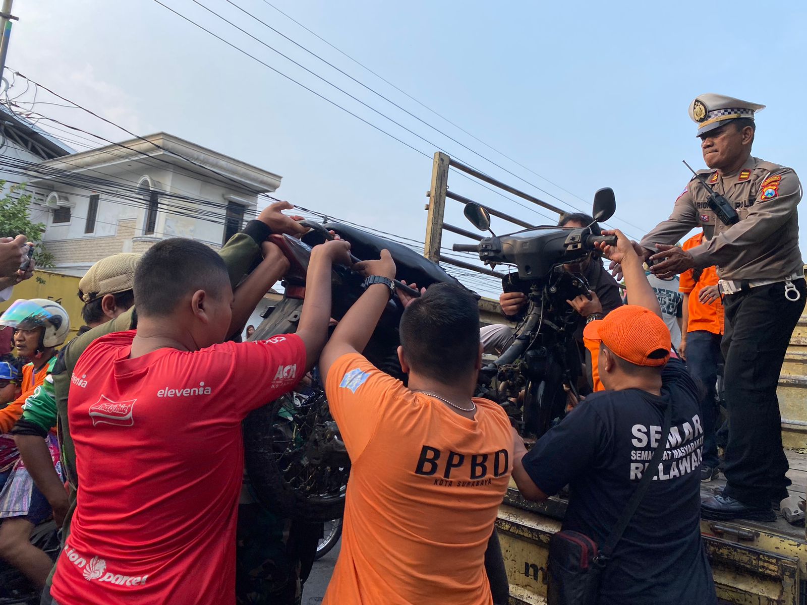 Gogot menambahkan, pascaevakuasi dari dalam air, seluruh kendaraan roda dua itu langsung dibawa menuju Polsek Karangpilang menggunakan satu unit truk.