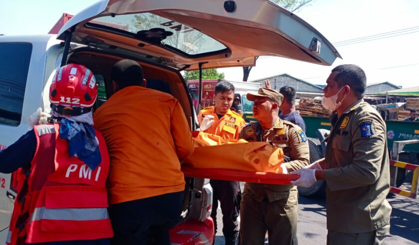 Petugas mengevakuasi korban kecelakaan di Jalan Greges Citra, Surabaya pada Senin (17/7/2023) siang. Foto: Command Center 112 Surabaya.