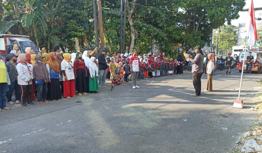 Yayasan Geng Gerakan Mengajak Sekolah (Gemes) melaksanakan upacara Hari Ulang Tahun (HUT) ke-78 Republik Indonesia (RI) bersama pekerja dan anak jalanan di Jalan Tambang Boyo, Surabaya pada Kamis (17/8/2023).